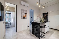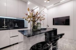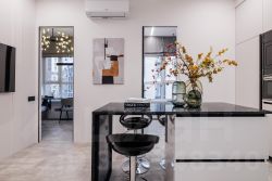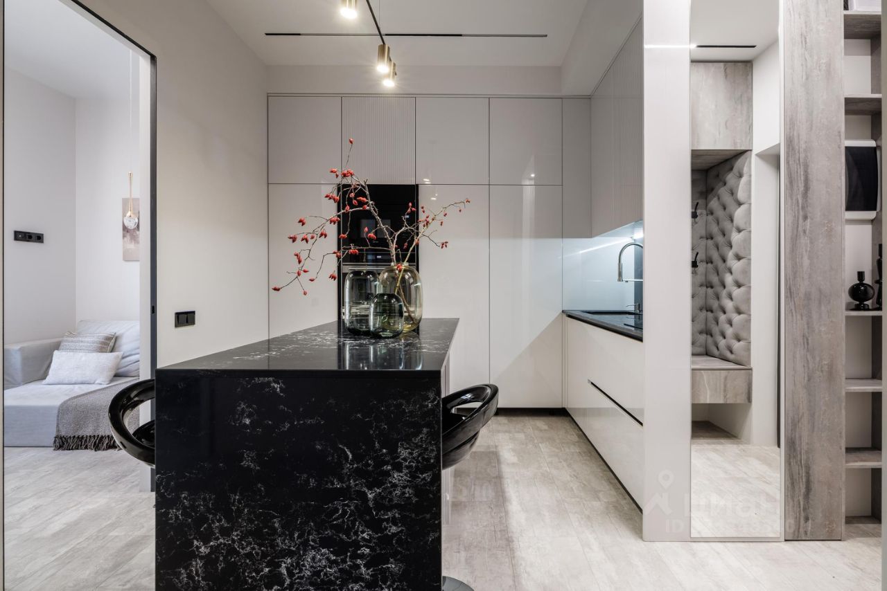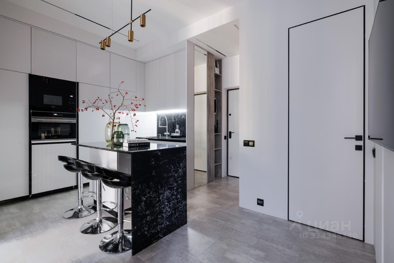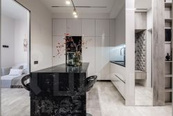 • кухня полностью укомплектована (холодильник, плита, духовка, посудомойка, вытяжка)