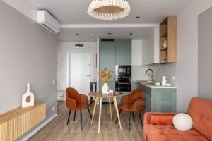 В квартире сделан качественный дизайнерский ремонт, имеется вся необходимая для жизни мебель и техника: холодильник, духовой шкаф, посудомоечная машина, стиральная машина, кондиционер.