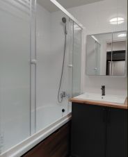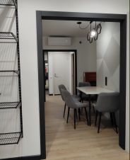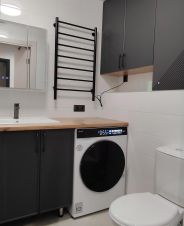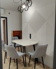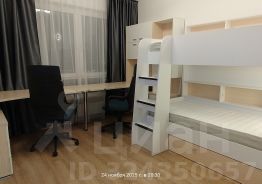 Большая кухня-гостиная разделена перегородкой, в одной спальне кровать 160х200 см, во второй спальне двухъярусная кровать с полноразмерными спальными местами 200х90 см. Вся мебель в квартире новая.