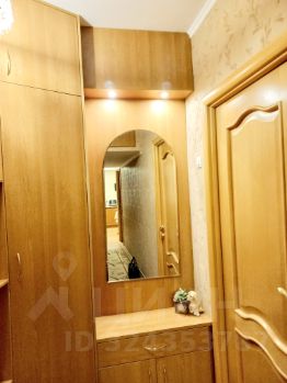 В прихожей большой зеркальный шкаф-купе с антрессолью.