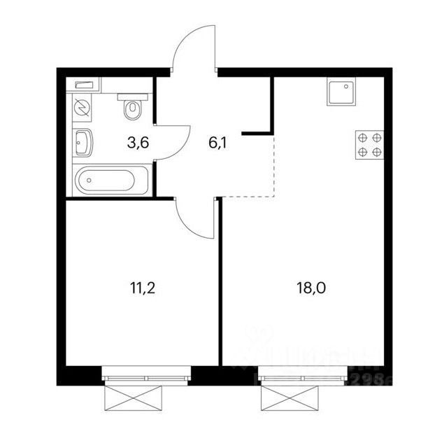 Квартира расположена на 18-м этаже 25-этажного дома, что открывает прекрасный вид на двор и улицу. Общая площадь квартиры составляет 39 кв. м, а просторная кухня гостинная — 18 кв.