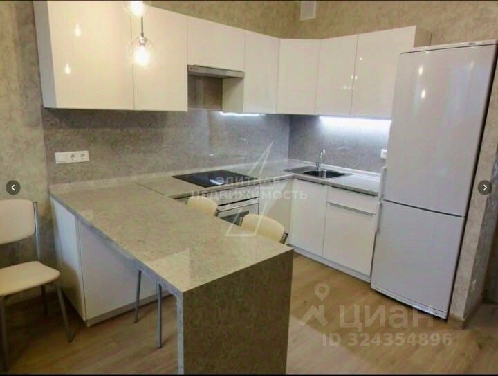 Просторная кухня с современной техникой — удобно готовить и собираться всей семьёй.