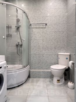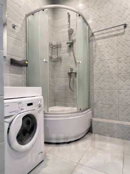 Совмещенный санузел с душевой кабиной. Стиральная машина.