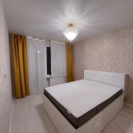 Сдам без посредников просторную 3 к. кв. с 2-мя санузлами и большой гардеробной на 3-ем этаже. Сдается впервые. Использовали мало. Теплая и светлая. Лоджия на солнечную южную сторону. Шумоизоляция пола. На этаже 4 квартиры. Тихо и зелено. В соседнем поселке "Кембридж" с 1-ого сентября должна начать работать новая красивая школа. Двуспальная кровать, комплект раскладной диван-кровать и 2 кресла, письменный стол, наборы посуды столовой и для готовки. Вместительный холодильник, духовка, микроволновая печь, газовая плита.