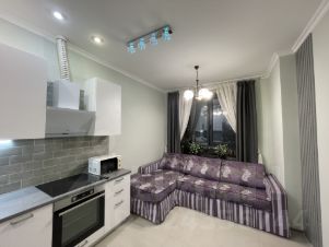В квартире выполнен новый ремонт, новая мебель, кровать с ортопедическим матрацем. Проведён интернет. Имеется вся необходимая техника: микроволновая печь, индукционная плита, духовка, вытяжка, телевизор-2шт., кондиционер, холодильник, стиральная машина , посудомоечная машина, водонагреватель.