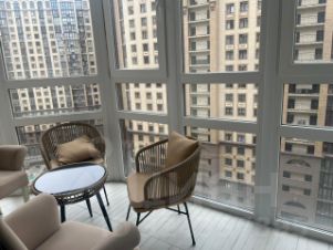 Просторная кухня-гостинная и 2 изолированные спальни. Квартира полностью оснащена мебелью и техникой. Кухня с набором встроенной бытовой техники: холодильник, духовой шкаф, посудомоечная машина.кондиционеры. в квартире 3 сан. узла: ванная комната оснащена ванной, стиральной машиной, большой шкаф для хранения, спальня с гардеробной и своим с/у, дополнительный с/у в коридоре. В квартире большое количество мест для хранения, есть 2 гардеробные.