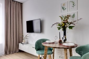 Уютная современная квартира - студия в стиле 'Mint Silk', в аренду посуточно у метро Аминьевская.
