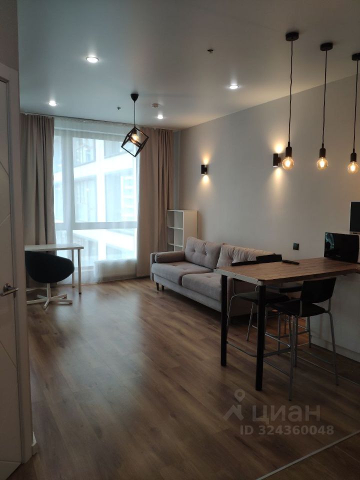 Квартира общей площадью 47 кв.м. с гардеробной, ванной комнатой и отдельной спальней. Панорамные окна с видом во двор дома.
