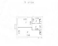 Квартира располагается на 9 этаже, площадь 41,3 м2., окна выходят на северо-запад. Функциональная планировка: