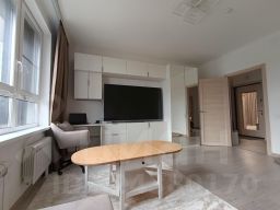 Дом новый, с просторной наземной парковкой и тремя грузовыми лифтами, что удобно для переезда. В доме также есть подземный паркинг и парковка вокруг дома. Мусоропровод работает в штатном режиме. В квартире подключен качественный интернет, в каждой комнате есть большой телевизор.