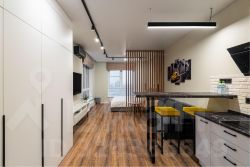 Современные и стильные апартаменты площадью 33 м² расположены в новом жилом комплексе Тринити-2, всего в 3 минутах ходьбы от метро Верхние Лихоборы. Пространство продумано до мелочей и визуально разделено на зоны: уютное спальное место отделено деревянными рейками, а гостиная зона объединена с кухней.