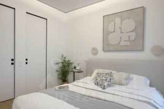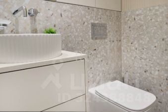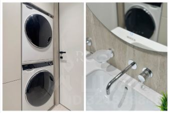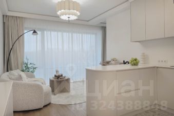 Планировкой предусмотрены: просторная кухня-гостинная, санузел, гардеробная, мастер спальня с собственными гардеробной и санузлом. В гостиной есть ниша, которую можно организовать под кабинет. В квартире выполнен дизайнерский ремонт из качественных материалов, укомплектована всей необходимой техникой и мебелью. Большим преимуществом является панорамное остекление, квартира очень светлая.