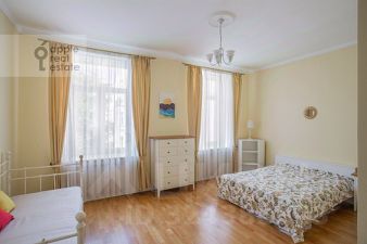 Эксклюзив.Великолепная многокомнатная квартира в отреставрированном доходном историческом доме 1913 года, 5 / 5 этаж. Спален: 4, санузлов: 3. Общая площадь: 340 кв.м. Комнаты: 75-26-29 -17-23-25-33 кв.м. Кухня: 43 кв.м. Высота потолков 3.2 м. Ремонт в современном европейском стиле. Квартира частично меблирована, обсуждается вывоз или докупка под клиента. Огороженная территория. Охраняемый паркинг, есть 1 гарантированное машиноместо. Окна выходят на обе стороны. Посудомоечная машина, холодильник, центральная встроенная система кондиционирования, бойлер, душевая кабина, ванна, джакузи, стиральная машина, подогрев полов. Телевизор, кабельное тв, высокоскоростной интернет. Есть постирочная и отдельная гардеробная при основной спальне. Просторная гостиная с дровяным действующим камином. Можно с детьми, можно с животными, возможна оплата по безналу. Собственник ИП.