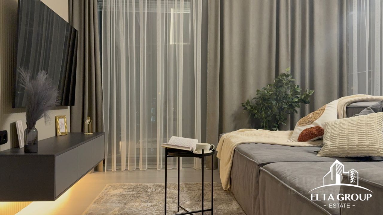 Квартира сдается со всей необходимой мебелью и техникой: посудомоечная и стиральная машины, духовой шкаф, варочная плита, микроволновая печь, кондиционеры, диван, кровать, телевизор, места для хранения, вариация освещения.