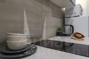 - Удобная обеденная и кухонная зона с набором посуды, плитой, микроволновой печью