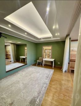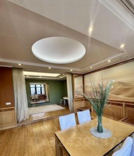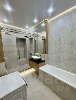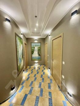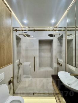 Квартира выполнена в современном дизайнерском стиле. В комнатах и на кухне есть вся необходимая мебель. Кухня — просторная, 16 кв. м, оборудована техникой: холодильником, посудомоечной машиной и кондиционером. В ванной установлена душевая кабина и стиральная машина. Планировка включает совмещенный и отдельный санузлы, а также лоджию с видом во двор.
