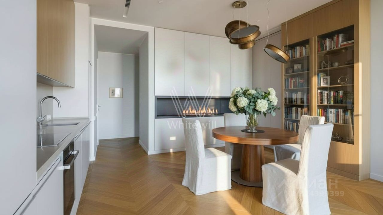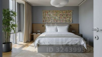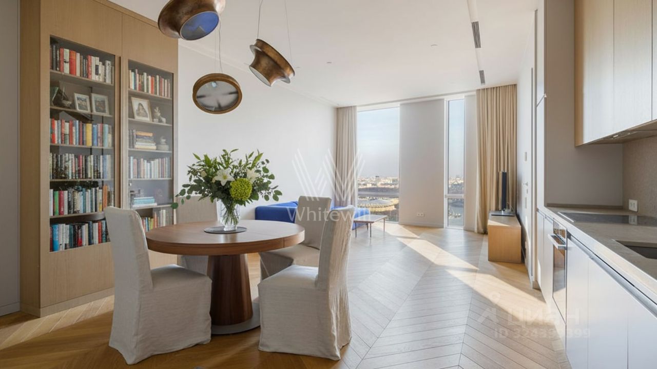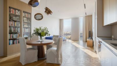 Видовая квартира с 1 спальней общей площадью 150 м² в комплексе бизнес-класса "Дом на Мосфильмовской" на 43 этаже. Выполнена дизайнерская отделка в современном стиле в лаконичных светло-серых тонах. Панорамные окна наполняют пространство светом и открывают живописные виды на Москву-реку, стадион "Лужники" и МГУ. Спланирована кухня-гостиная с обеденной зоной, спальня с просторной гардеробной и санузлом с душевой, гостевой санузел, прихожая. Квартира полностью меблирована и оборудована бытовой техникой Miele, Neff, ASKO. Организовано много мест для хранения вещей.
