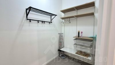 В квартире есть просторная кладовая комната, оборудованная местами для хранения и гладильной доской.