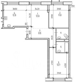 Раздельный санузел: туалет/постирочная (~3,5 м²) и ванная с душем (~3,5 м²)