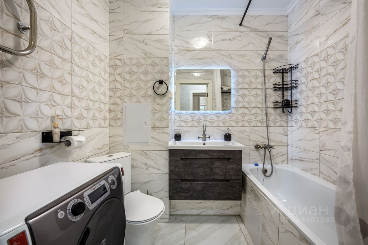 В квартире сделан дизайнерский ремонт, который придаёт ей современный и уютный вид. В наличии вся необходимая мебель как в комнате, так и на кухне. Вас порадуют современные бытовые приборы: кондиционер, холодильник, телевизор, стиральная и посудомоечная машины. В ванной комнате установлена ванна. Планировка квартиры включает в себя одну лоджию, что добавляет пространства и света.