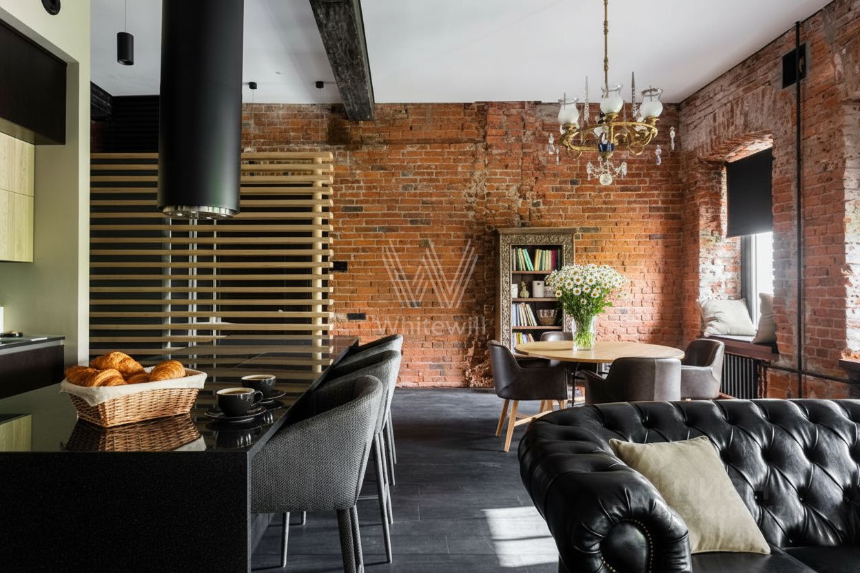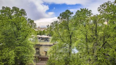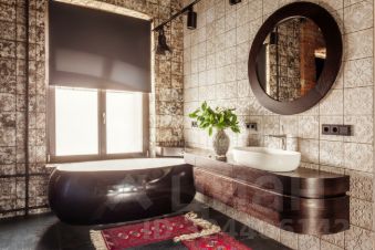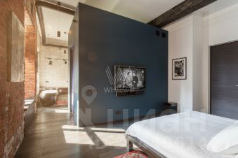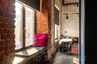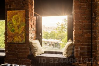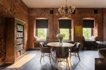 Дизайнерская квартира площадью 95 м² с видом на Патриарший пруд. Интерьер оформлен в стиле "лофт", украшен авторскими светильниками и картинами. В отделке использован классический красный кирпич, натуральное дерево. Спланирована просторная гостиная-столовая-кухня с 4-мя окнами, спальня со своей гардеробной и ванной комнатой, санузел с душевой.