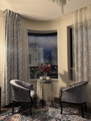 микроволновка, стиральная/сушильная машина, полноценная кровать, большие встраиваемые шкафы, гардеробная, большие панорамные окна выходят в благоустроенный двор и на реку. Два санузла с душем и ванной. Вся техника премиального качества.