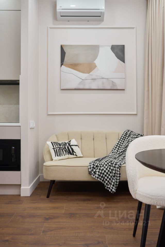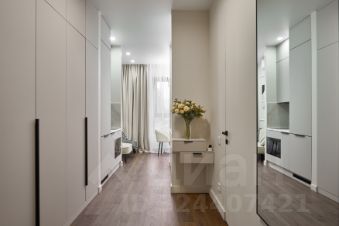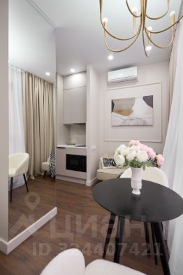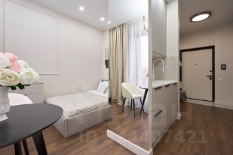 В квартире выполнен качественный ремонт по авторскому дизайн-проекту, пространство продумано до мелочей: выполнено зонирование на кухонную, обеденную и спальную зоны, включая полноценную двухспальную кровать. Также в квартире продумано большое количество мест для хранения.