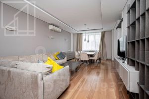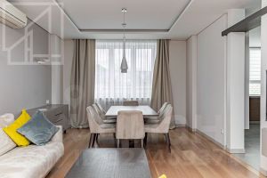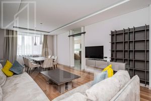 Планировка: уютная гостиная с обеденной зоной, кухня, две спальни, два совмещенных c/у, гостевой с/у и гардеробная комната. Выполнена современная отделка в лаконичных светлых тонах. Квартира полностью меблирована и укомплектована бытовой техникой. Установлена система кондиционирования, посудомоечная и стиральная машина.