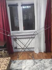 Из техники в комнате новый тетевизор, новая гладильная доска, новый утюг, новая сушка для белья, новый инвентарь для уборки, в коридоре индивидуальный холодильник, в ванной стиральная машина, на кухне микроволновая печь, электроплита.