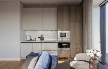 Главное об апартаментах: 10 этаж, 73 метра, кухня-гостиная, спальня, кабинет, два санузла. Техника Smeg, Maunfeld. В стоимость входит одно машино-место.