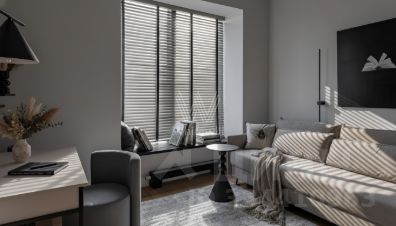 Вторая комната — идеальный домашний офис, воплощение геометрии и порядка. Жалюзи отгораживают её от внешнего мира, помогая сосредоточиться на важном.