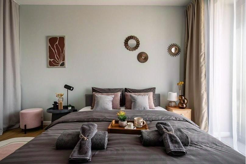 Wi-Fi, ТV с Алисой, стиральная машина, посудомоечная машина, микроволновая печь, холодильник, утюг, фен, гладильная доска, сушилка, полотенца банные(по кол-ву гостей), полотенца малые(по кол-ву гостей) , постельное белье, шампунь, мыло, бытовая химия, полный комплект посуды и приборов на 4 персоны, кастрюля, сковорода, чайник, и многое другое.