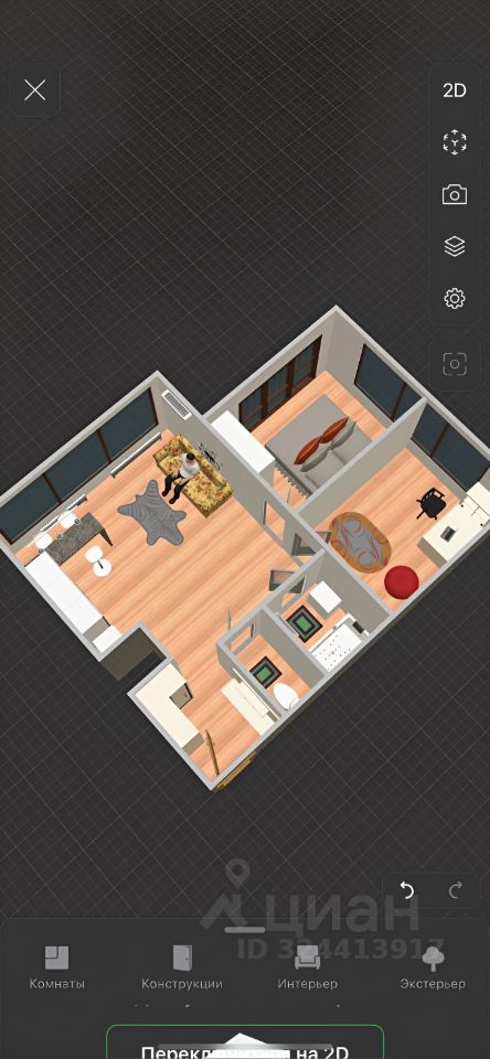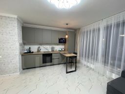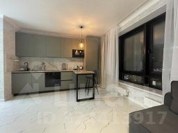 Сама квартира в идеальном состоянии , кухня - гостиная достаточно просторная , спальня 10 м и небольшой кабинет 9 м . Это 2-х комнатная квартира , так зонирована .