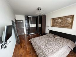 В КВАРТИРЕ - на кухне гарнитур: Хол, стиральная машина, посудомоечная машина, духовой шкаф, варочная панель, свч . В двух комнатах по двух спальной кровати МАТРАСЫ ЗАМЕНИЛИ - на фото старый , шкаф , в третьей шкаф, диван - раскладывается ,столик, кондиционер . Лоджия застеклена с отличным видам . Окна выходят во двор и сквер . Сан.узел раздельный . Квартира сдается на длительный срок.
