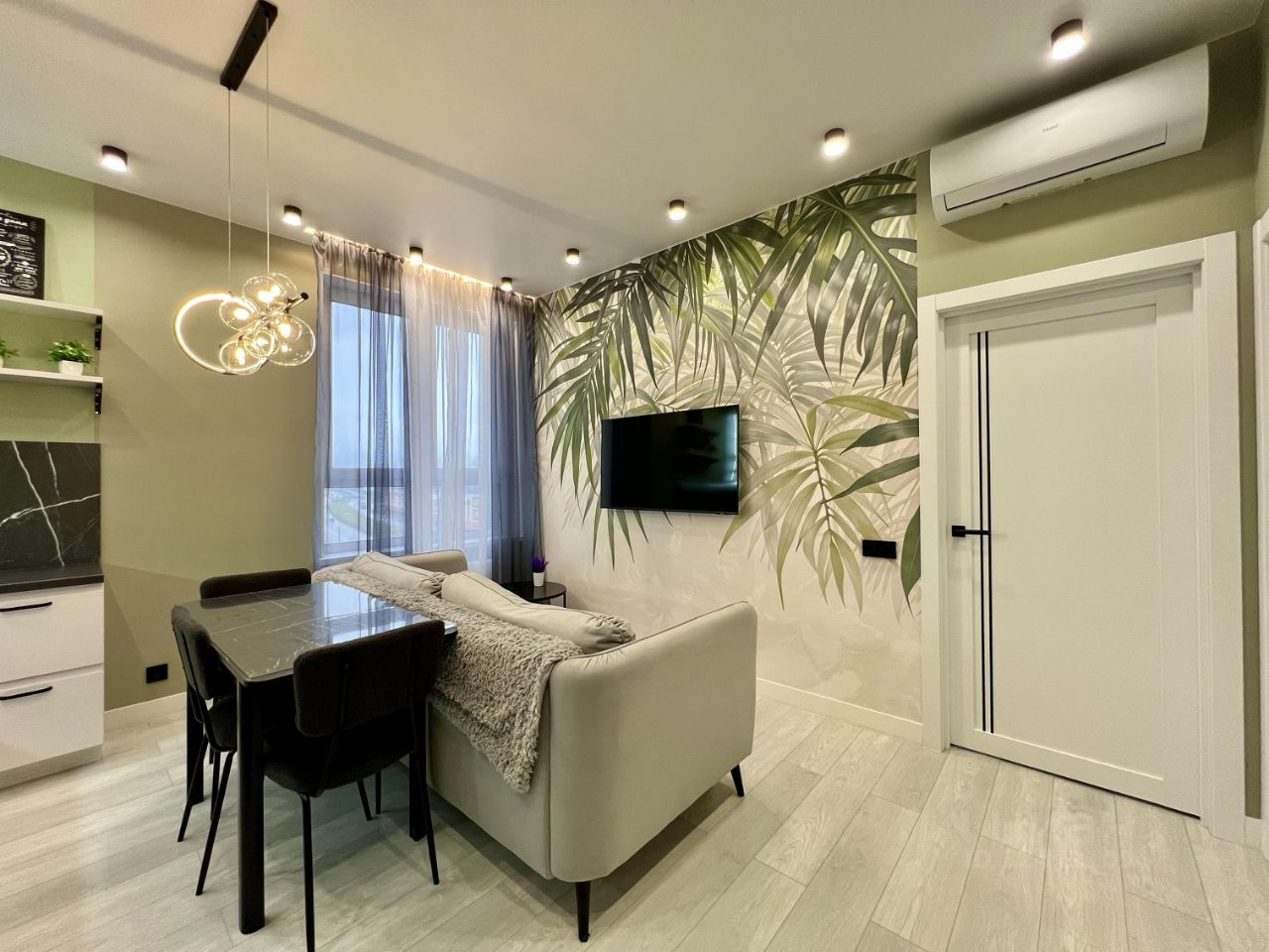 Из техники к вашим услугам: кондиционер 2 шт, холодильник, посудомоечная машина (60см), телевизор, микроволновка, духовка, стиральная машина, утюг, электрочайник.