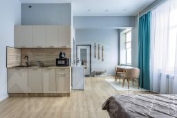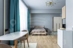 Объект расположен по адресу Ухтомская улица, дом 19, в престижном Лефортовском районе. В квартире выполнен современный евроремонт с использованием качественных материалов, установлена мебель и техника, продуманы функциональные зоны. Высота потолков — 3 метра. Студия сдается впервые!