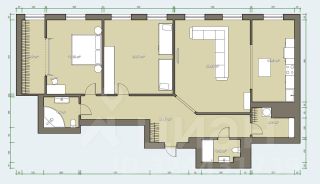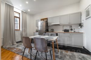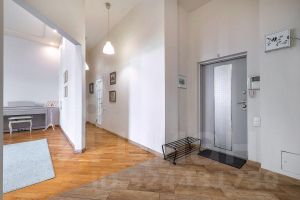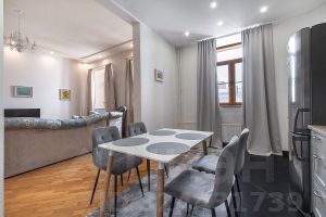Площадь квартиры 125м, потолки 3.6м. Гостиная 29м, кухня 15м, 2 спальни 25м и 22м, гардеробная с раздвижными дверьми и окном, прачечная, 2 совмещенных с/узла (с душем и с ванной), просторный холл