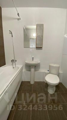 Санузел совместный, с ванной, оборудован стиральной машиной на 6кг загрузки, зеркалом и шкафчиком для туалетных принадлежностей.