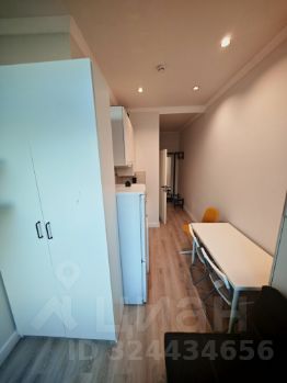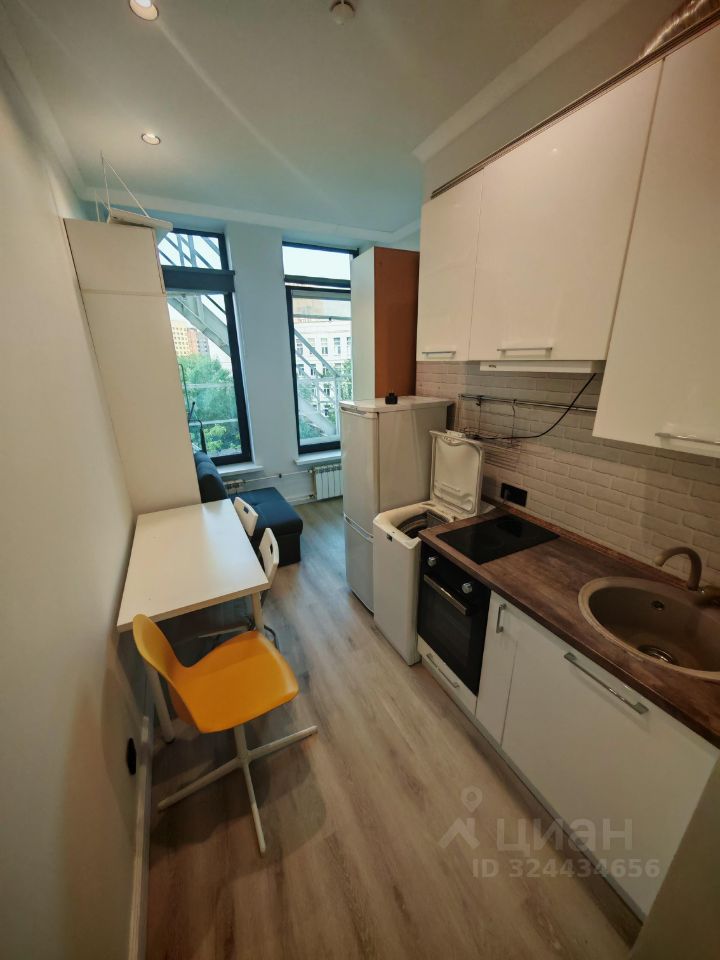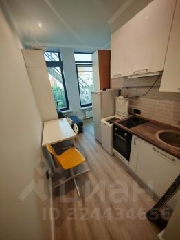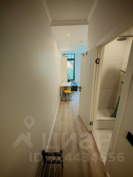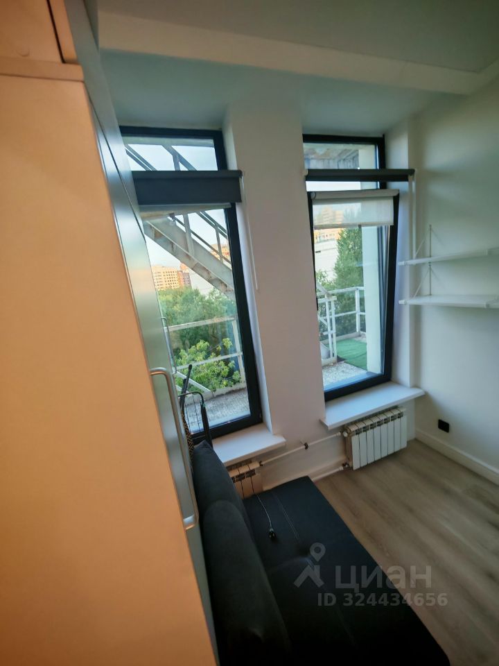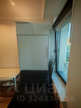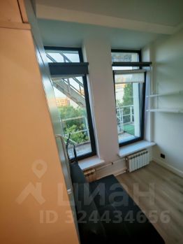 Студия выполнена в современном стиле, с высокими потолками и большими панорамными окнами.