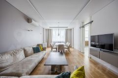 ID 45802. Стильная 3-комнатная квартира в элитном жилом комплексе в районе Сокол. Общая площадь 120 кв. м. Пространство грамотно зонировано: 2 спальни, 2 ванные комнаты, 3 гардеробные, просторная гостиная, изолированная кухня, балкон. Полностью меблирована и оборудована бытовой техникой, дизайнерский ремонт в современном стиле. Итальянская мебель, высококачественная бытовая техника, кондиционирование, бойлер, теплый пол, видеодомофон, встроенные шкафы. Окна во двор. Дом на огороженной охраняемой территории с видеонаблюдением и подземным паркингом. Есть возможность арендовать машино-место. Во дворе гостевая парковка, детские и спортивные площадки. В шаговой доступности Тимирязевский парк, магазины, кафе, торговые центры, школа и детский сад. Можно с детьми. Без животных.