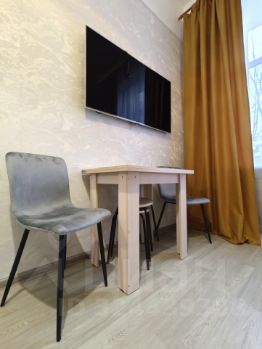 В квартире выполнен новый ремонт, никто не проживал. Квартира светлая, теплая, и очень комфортная. Высота потолков - 3,5 м. Установлены пластиковые стеклопакеты. Высокий первый этаж кирпичного дома. Для комфортного проживания квартира укомплектована всей необходимой новой мебелью и бытовой техникой, включая холодильник, стиральную машину-автомат, электрическую варочную плитку, электрический чайник, печь СВЧ, телевизор и пр. Современный кухонный гарнитур, удобный раскладывающийся диван-кровать, стол, стулья, платяной шкаф и многое др. Чистый, ухоженный подъезд. Добропорядочные и спокойные соседи.