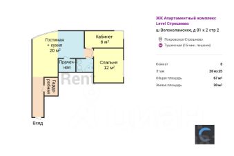 Предлагается 3-комнатная квартира общей площадью 67 м² в ЖК "Апартаментный комплекс Level Стрешнево". Квартира сдается впервые после ремонта. Высокие потолки увеличивают пространство, наполняя его светом. Для комфортного проживания в наличии имеется вся необходимая мебель, а также система теплого пола. Кухонный гарнитур оснащен посудомоечной машиной, духовой печью. Для удобства организованы гардеробная комната и прачечная. Квартира с прекрасными видовыми характеристиками.