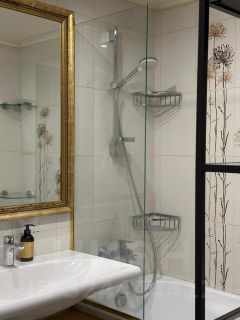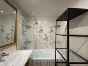 В квартире сделан дизайнерский ремонт, который создает современную и стильную атмосферу. Комнаты меблированы, а на кухне установлена современная мебель и техника: кондиционер, холодильник, телевизор, посудомоечная и стиральная машины. Санузел совмещенный, оборудован душевой кабиной. Также есть 2 теплых балкона с зоной хранения, где можно наслаждаться свежим воздухом. Гостиная, 2 обособленные спальни: мастер спальня с гардеробной комнатой, и детская кабинет с односпальной кроватью.