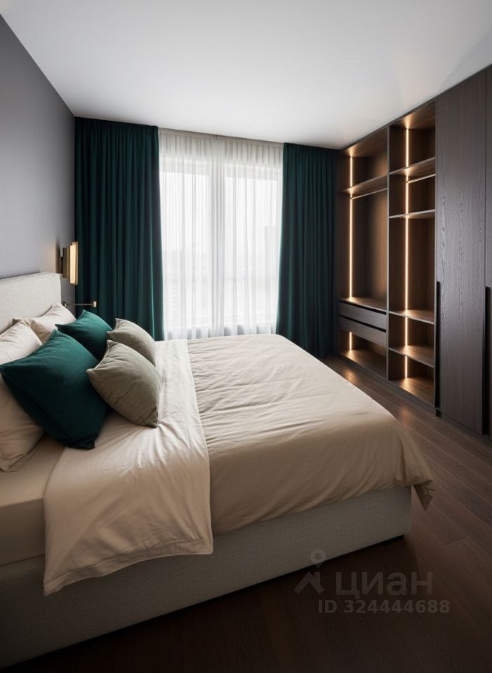 Спальня с встроенным гардеробом и санузлом полноценным,