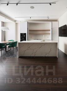 Кухня, совмещенная с гостиной, с кухонным островком,