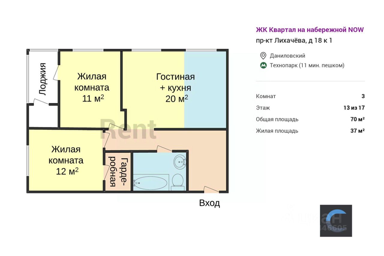 Предлагается 3-комнатная квартира общей площадью 70 м² в ЖК "Квартал на набережной NOW" недалеко от станции метро "Технопарк". Высокие потолки увеличивают пространство, наполняя его светом. Для комфортного проживания в наличии имеется вся необходимая мебель, а также нагреватель воды и система теплого пола. Кухонный гарнитур оснащен посудомоечной машиной, духовой печью. Для удобства организована гардеробная комната. Из дополнительных преимуществ - наличие лоджии. Окна обращены во двор, обеспечивая тишину.