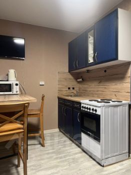 Вся необходимая мебель и техника: раскладной 2-х спальный диван, телевизор. Холодильник, стиральная машина, электроплита, кухонный гарнитур, стол, шкаф для одежды.