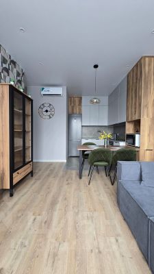 Квартира стильная и светлая, с новым дизайнерским ремонтом, где каждая деталь продумана до мелочей. Удобная планировка: кухня-гостиная, спальня, ванная комната, постирочная/гардеробная, есть небольшой балкон. Квартира оборудована всем необходимым для комфортного проживания: новая мебель, вся необходимая техника, вместительные системы хранения.
