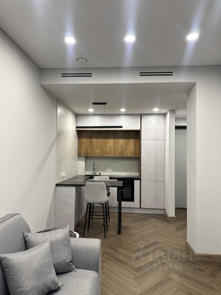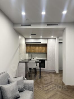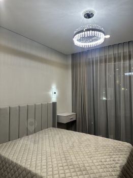 В квартире есть все необходимое для комфортного проживания: современная мебель на кухне и в комнате, а также полный комплект техники — кондиционер, холодильник, посудомоечная машина, телевизор и стиральная машина. Санузел совмещенный, оборудован стильной душевой кабиной. Окна выходят как на улицу, так и во двор, что обеспечивает хороший обзор и естественное освещение. Установлена система умный дом от компании Ujin.