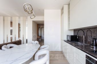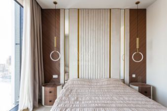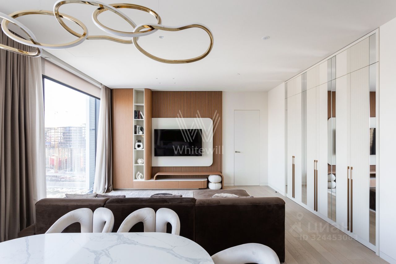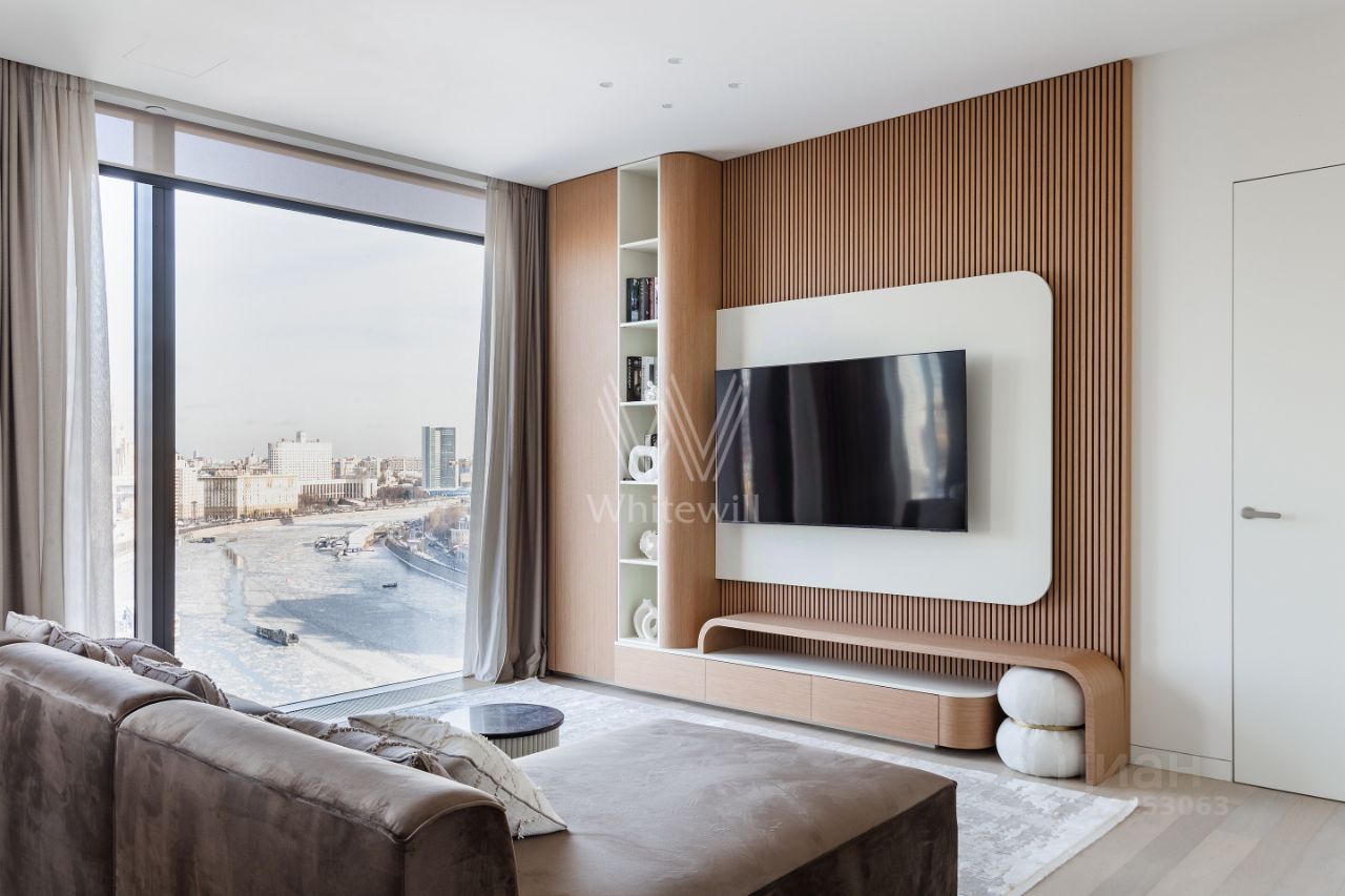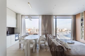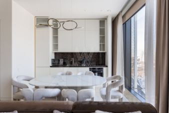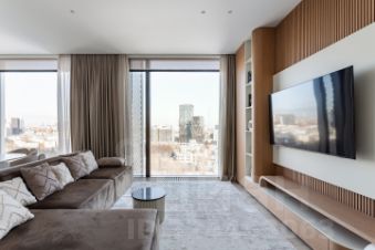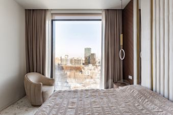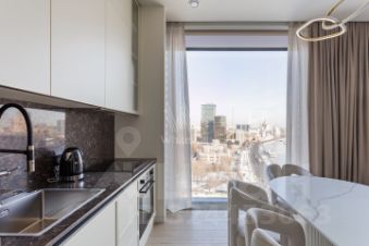 Видовая квартира площадью 72 м² в комплексе небоскрёбов премиум-класса Capital Towers. Выполнена дизайнерская отделка в современном стиле, интерьер оформлен в лаконичных светлых тонах. Установлены шторы блэкаут и жалюзи на пульте управления. Панорамные окна с возможностью проветривания наполняют пространство светом и открывают живописные виды на Москву-реку и гостиницу "Украина".
